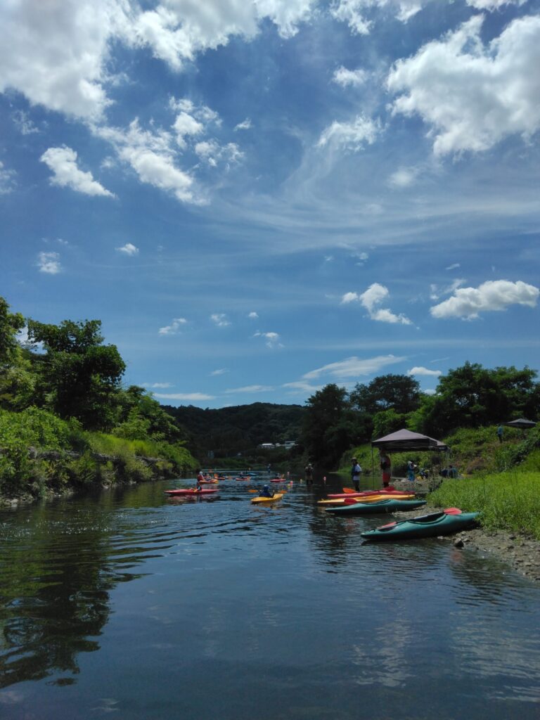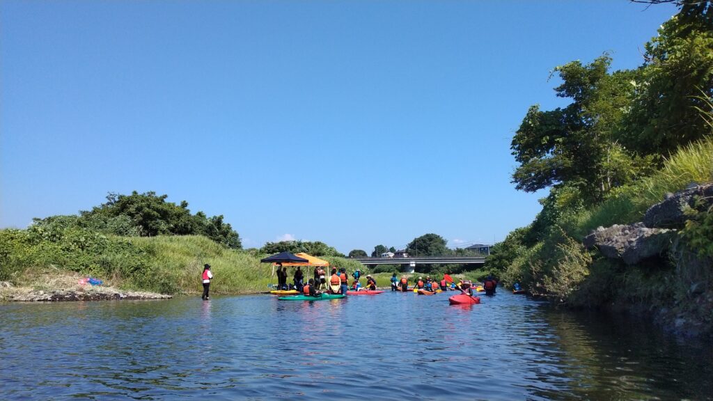 入間川の中流域、飯能市阿須にてカヌーを実施します。(阿須運動公園駐車場)
